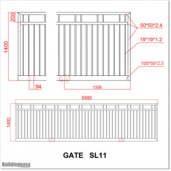 Gate is 5300mm wide and gate height is 1400mm. Overall gate height with wheels and tracks 1.5M