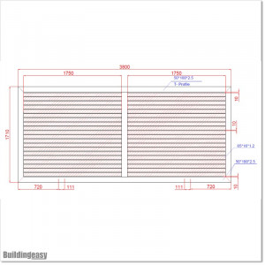 The gate is fully welded with no screws used, unlike similar gates found elsewhere. Slats are laser welded to the frame, and the frame is TIG welded. No plastic is used. The gate is made of aluminum, with the main structure being a strong 100 x 50 mm square profile, 2.5 mm thick. Slats measure 65 x 16 mm and are 1.2 mm thick. The top railing has 5mm wider rib for the roller guide. This prevents whole top rail touching roller guide. The weight of the gate is about 70 kg.