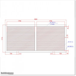 Gate is 3800mm wide and 1785mm high. Gate fits 3.5M gap between posts.