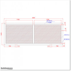 Gate is 3800mm wide and 1485mm high. Gate fits 3.5M gap between posts.