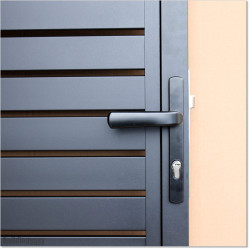The gate is welded with no screws used, unlike similar gates found elsewhere. The gate is made of aluminum, with the main structure being 50 x 50 mm square profile, 2.4 mm thick. Blades measure 65 x 16 mm and are 1.2 mm thick. Gate is powder coated in Matte Black (RAL9005). The weight of the gate is about 23 kg.